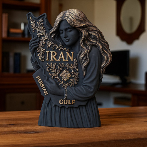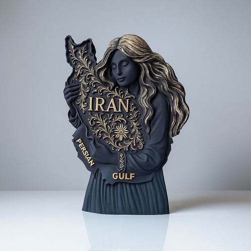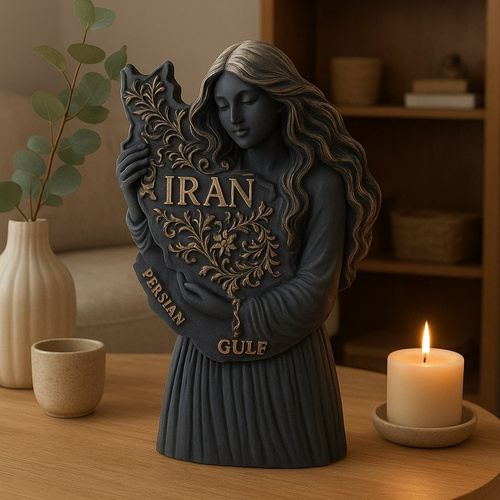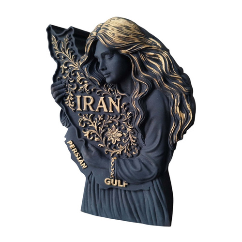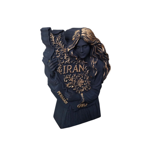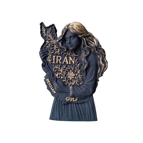 این مجسمه زیبا و خاص با عنوان ایراندخت از جنس بتن پلیمری با کیفیت ساخته شده است و استحکام و دوام بالایی دارد و در عین حال ظاهری مدرن و لوکس به خود گرفته است و طراحی آن تلفیقی از هنر و معناست و ایراندخت در آغوش خود نقشه ایران را با نقشونگارهای اصیل ایرانی نگه داشته و واژههای IRAN و PERSIAN GULF بهصورت برجسته و طلایی بر روی آن جلوهگری میکنند و ابعاد این اثر با ارتفاع 12 سانتیمتر و طول 7 سانتیمتر و عرض حدود 2 تا 3 سانتیمتر مناسب برای قرارگیری بر روی میز کار، شلفهای دکوراتیو، کتابخانه یا حتی هدیهای ارزشمند است و رنگ مشکی مات همراه با جزئیات طلایی ترکیبی لوکس و کلاسیک ایجاد کرده است و این مجسمه نماد عشق به ایران و یادآور فرهنگ و تاریخ غنی این سرزمین کهن است و اثری ماندگار برای علاقهمندان به هنر و دکوراسیون خواهد بود.