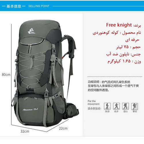 کوله پشتی کوهنوردی 75 لیتری فری نایت مدل FK0393