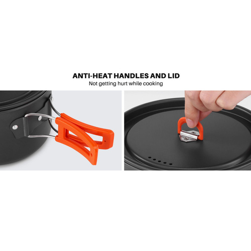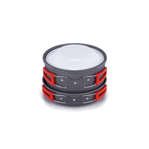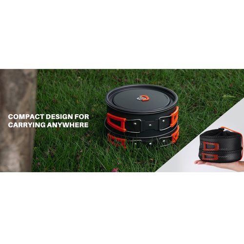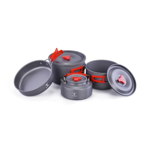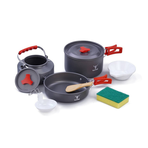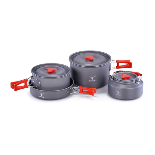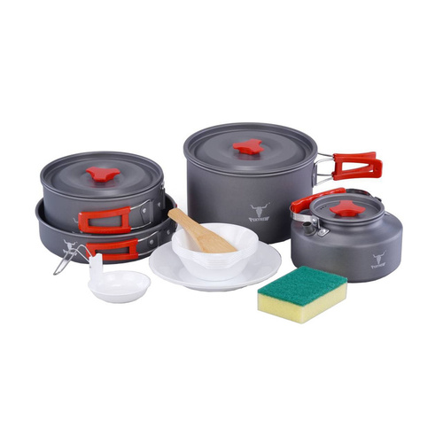 این ست ظروف 15 پارچه با طراحی کله گاوی، همراهی کامل برای سفرها و ماجراجوییهای شما است. این مجموعه شامل پنج کاسه پلاستیکی، یک قابلمه 2 لیتری، یک قابلمه 3 لیتری، یک ماهیتابه، سه درپوش (دو درپوش برای قابلمهها و یکی برای کتری) و یک قاشق بامبو است. این ست برای فعالیتهایی نظیر پیادهروی، کولهپشتی، کمپینگ و هر گونه فعالیت دیگر در فضای باز، ایدهآل و کاربردی است. این ست ظروف با وجود 15 پارچه، به راحتی حمل و نقل میشود. قابلمه و ماهیتابهها از آلومینیوم آنودایز ساخته شدهاند که غیرسمی و سبک هستند و دارای پوشش نچسب برای استفاده و تمیز کردن آسانتر میباشند. دستههای تاشو و حرارتی ایزوله شده در هر قطعه، باعث میشود که دستهای شما نسوزد و تجربه آشپزی راحتتری داشته باشید. این ست فوقالعاده قابل حمل است و با طراحی تاشو و جمعوجور، میتواند به آسانی در کولهپشتی جا شود و تمامی اشیای موجود در این مجموعه در یک کیسه توری جمع شده و حمل آنها بسیار راحت است. این ست ظروف آشپزی برای کسانی که عاشق کمپینگ و فعالیتهای بیرونی با خانواده و دوستان هستند، طراحی شده است. این ست با وجود وزن سبک و قابلیت حمل آسان، گزینهای عالی برای کمپینگ، پیادهروی، کولهپشتی، پیکنیک و سایر فعالیتهای در فضای باز میباشد. این ست شما را قادر میسازد تا هر نوع وعده غذایی را در هر جایی که هستید، به آسانی آماده کنید و از آشپزی در طبیعت لذت ببرید