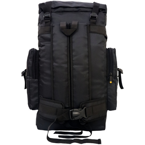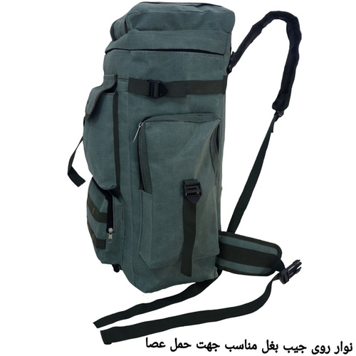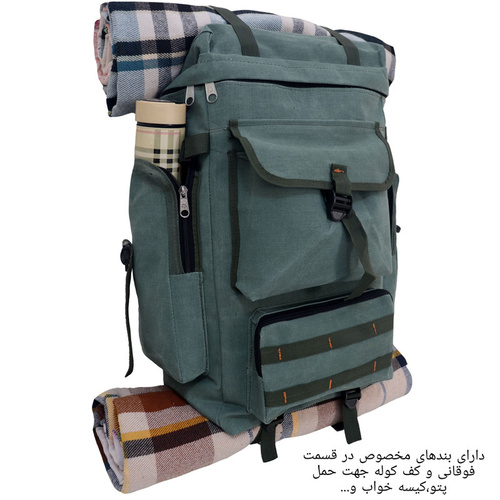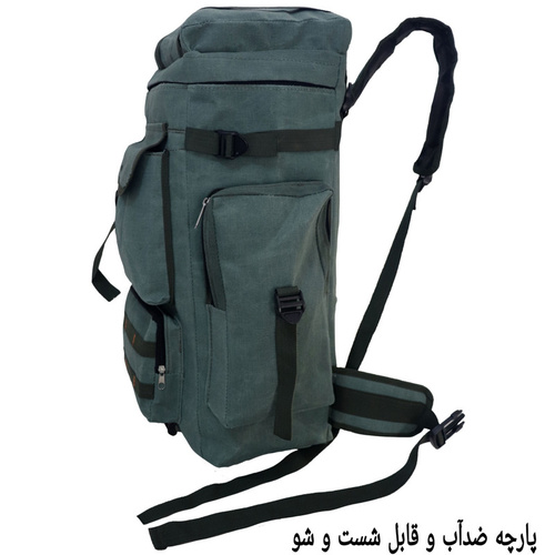 دارای پارچه ضد آب.دارای نوار و قفل مخصوص حمل کیسه خواب و پتو و عصا و...در قسمت کف کوله پشتی دارای نوار و سگگ مخصوص در دوطرف کوله پشتی جهت حمل کاپشن،عصا،پتوو...