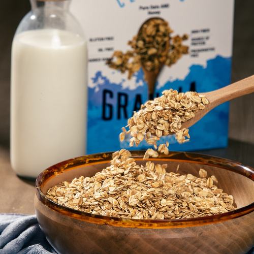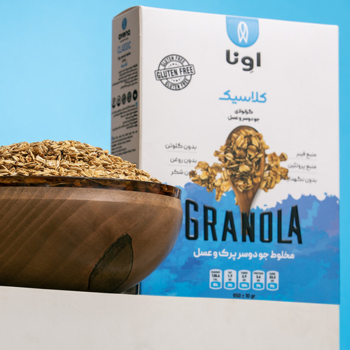 گرانولای جودوسر و عسل صبحانه و میان وعدهای سرشار از انرژی برای روزهای پر از جنبوجوش است. طعم هیجانانگیز گرانولا آن را تبدیل به یکی از اصلیترین خوراکیهای هر خانواده میکند. این خوراکی مغذی دارای طعمی لذیذ است و افراد زیادی طرفدار این ترکیب از گرانولا هستند. این محصول شامل جو دوسر و عسل پخته شده است که قابل استفاده سریع میباشد. این محصول را میتوانید با انواع مغزیجات یا میوه های خشک یا میوه های تازه و یا شیر یا ماست یا بستنی بسته به سلیقه و زمان مصرف ترکیب و نوش جان نمایید. این میان وعده خوشطعم حاوی مواد مغذی و مورد نیاز بدن در طول روز است. مصرف این گرانولا میتواند باعث کاهش روند پیری، جلوگیری از سرطان و بیماریهای قلبی، کاهش کلسترول خون، کاهش سطح قند خون و تقویت عضلات و استخوانها شود. ارزش غذایی یک وعده 35 گرمی این محصول شامل 120 کیلوکالری انرژی، 4.5 گرم فیبر، 3.3 گرم پروتئین، 23 گرم کربوهیدرات، 1.4 گرم بتاگلوکان و 1.7 گرم چربی است. چه افرادی میتوانند از گرانولا مصرف کنند؟ کودکان، بزرگسالان و حتی افراد سالمند نیز میتوانند از گرانولا مصرف کنند. کودکانی که عادات غذایی سالم یا میل به صبحانه ندارند این ماده غذایی برای آنها بسیار خوشمزه است و تمایل به میل صبحانه را در بین این کودکان افزایش میدهد. فیبر بالای این محصول نیز مانع گرسنگی در کوتاهمدت میشود و از این رو برای افرادی که در طی روز وقت زیادی برای خوردن غذا ندارند یا در حال تلاش برای کاهش وزن هستند میان وعده بسیار مناسبی است. ورزشکاران نیز میتوانند برای به دست آوردن انرژی کافی از این خوراکی هیجانانگیز در روزهای تمرین استفاده کنند. این محصول فاقد گلوتن است. این ماده غذایی سرشار از انرژی را میتوان در وعده صبحانه، میان وعده و حتی بهعنوان جایگزین در وعده شام نیز میل کرد. گرانولای کلاسیک اونا را به تنهایی به عنوان تنقلاتی سالم و یا به همراه شیر و تکههای میوه یا مغزیجات و آجیل و یا بعنوان تاپینگ بستنی، انواع سالادها و حتی ماست نیز میتوان نوش جان کرد. استفاده از این محصول در کشورهای پیشرفته دنیا جزء لاینفک زنجیرهی غذایی میباشد، برای مثال 40 درصد صبحانه مردم آلمان غلات صبحانه میباشد.
