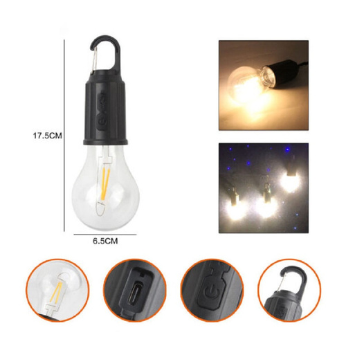 لامپ شارژی کمپی یک لامپ کاربردی با نور آفتابی و سه شدت نوری متفاوت است. این مدل لامپ اضطراری مشابه لامپهای عادی طراحی شده است؛ با این تفاوت که روی بدنه یک درگاه برای شارژ و یک دکمه برای On/Off در نظر گرفته شده است. در انتهای لامپ نیز یک گیرهی کارابین مانند قرار دارد که کمک میکند بتوان لامپ را به راحتی آویزان کرد. از این مدل لامپ معمولا در کمپینگها استفاده میشود و اگر اهل سفر هستید، توصیه میشود این مدل لامپ را همراه خود داشته باشید. با فشردن دکمهی روی بدنه، لامپ با شدت نور زیاد روشن میشود؛ با فشردن مجدد دکمه میتوان شدت نور را کمتر کرد. بعد از چهار بار فشردن دکمه نیز لامپ خاموش خواهد شد. برای شارژ لامپ شارژی کمپی فیلامنتی از کابل USB همراه محصول استفاده میشود. این کابل را میتوان به آداپتور شارژر، پاوربانک، لبتاب و … متصل کرد. لامپ بعد از 4 الی 6 ساعت شارژ میشود و با توجه به نور انتخابی و میزان استفاده، میتوان تا چند ساعت از نور آن استفاده کرد.