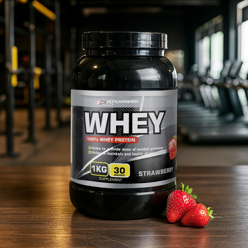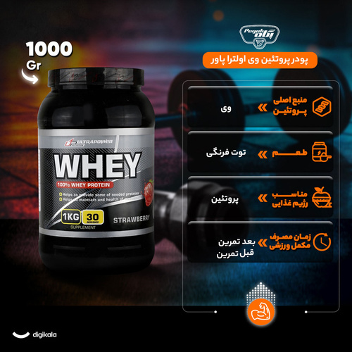 پودر پروتئین وی با طعم توت فرنگی اولترا پاور پگاه - 1000 گرم